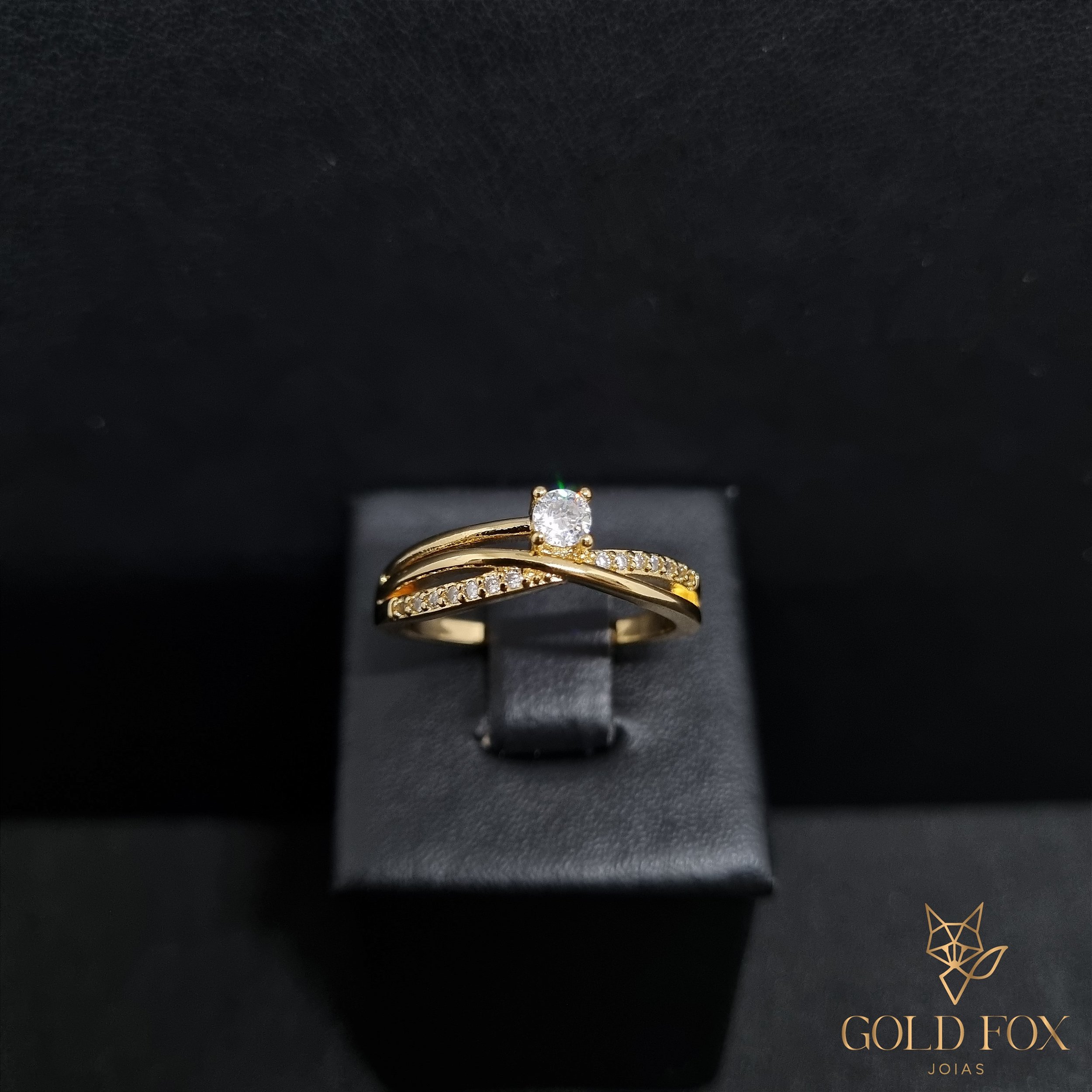 ANEL FIO LISO E CRAVEJADO COM PONTO DE LUZ (TAM. 18) - BANHADO A OURO 18K