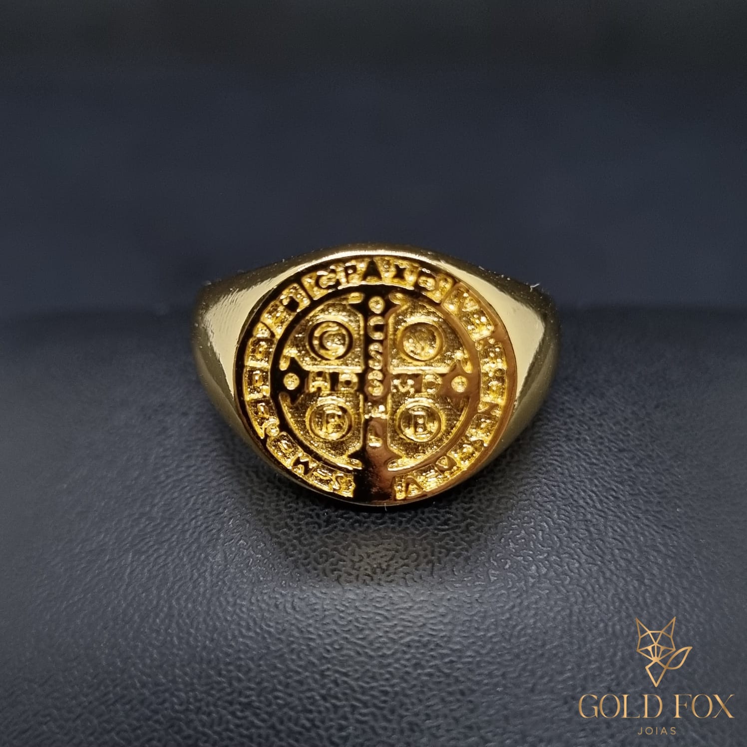 ANEL MEDALHA DE SÃO BENTO - BANHADO A OURO 18K