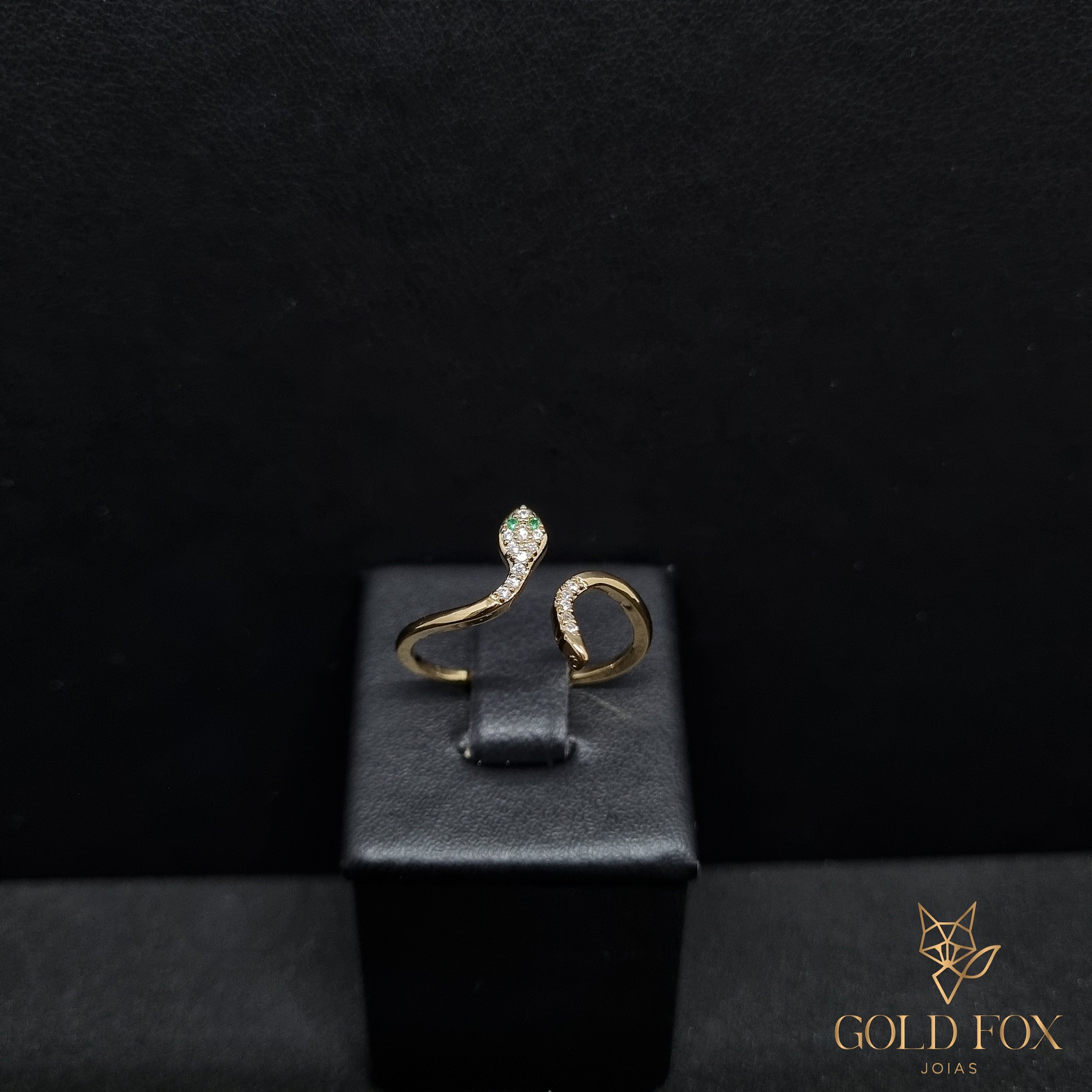 ANEL SNAKE CRAVEJADO CRISTAL OLHOS VERDES (AJUSTÁVEL) - BANHADO A OURO 18K