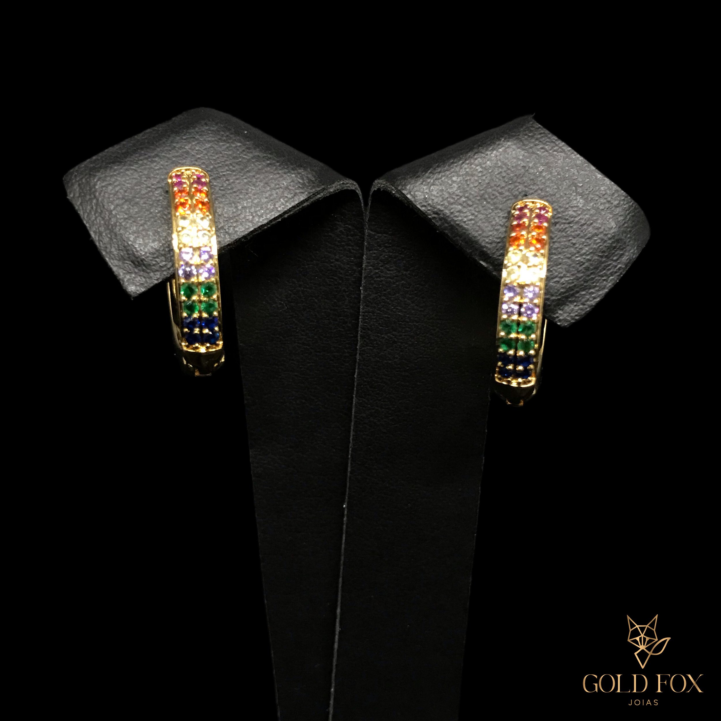 BRINCO ARGOLA CRAVEJADA 2 FILEIRAS COLORS DEGRADÊ G - BANHADO A OURO 18K