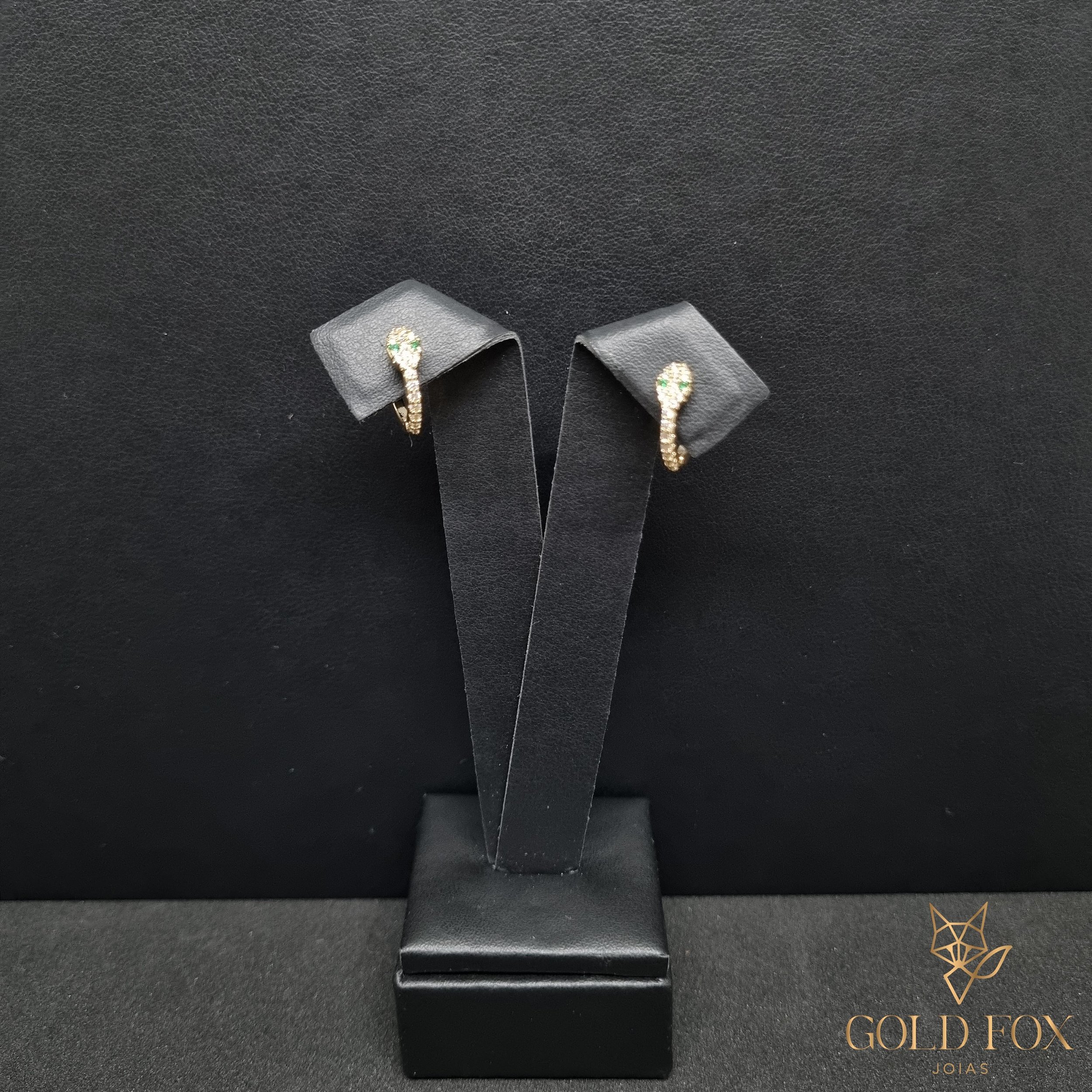 BRINCO ARGOLINHA CLICK SNAKE CRAVEJADA OLHOS VERDES - BANHADO A OURO 18K