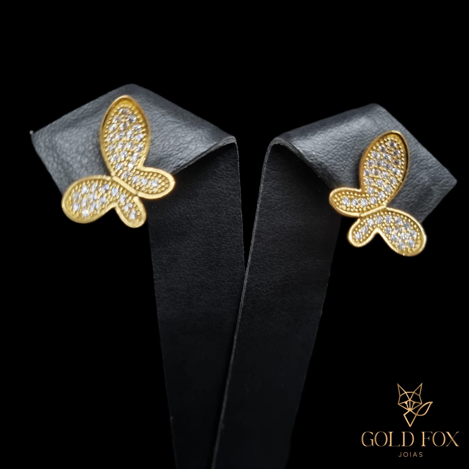 BRINCO BORBOLETA CRAVEJADO - BANHADO A OURO 18K