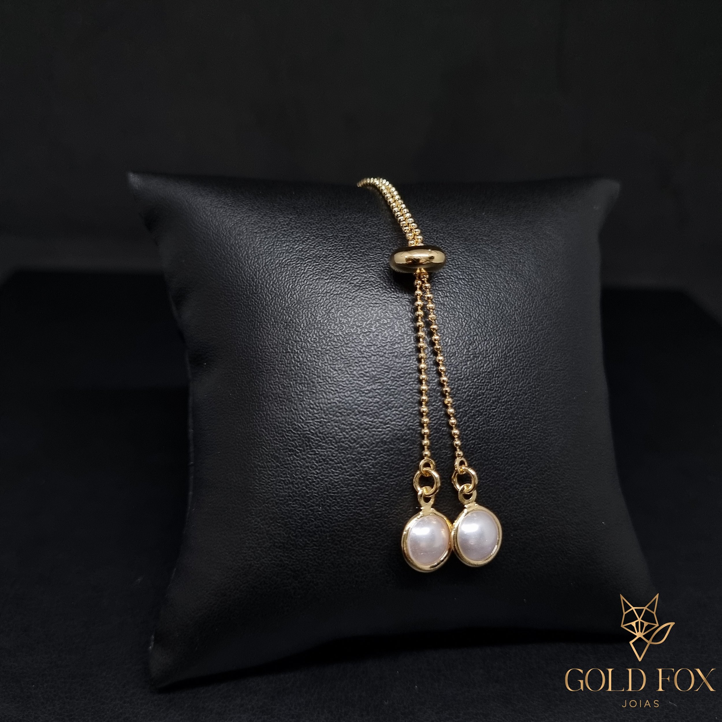 COLAR GRAVATA BOLINHA REGULÁVEL PÉROLAS BORDA - BANHADO A OURO 18K