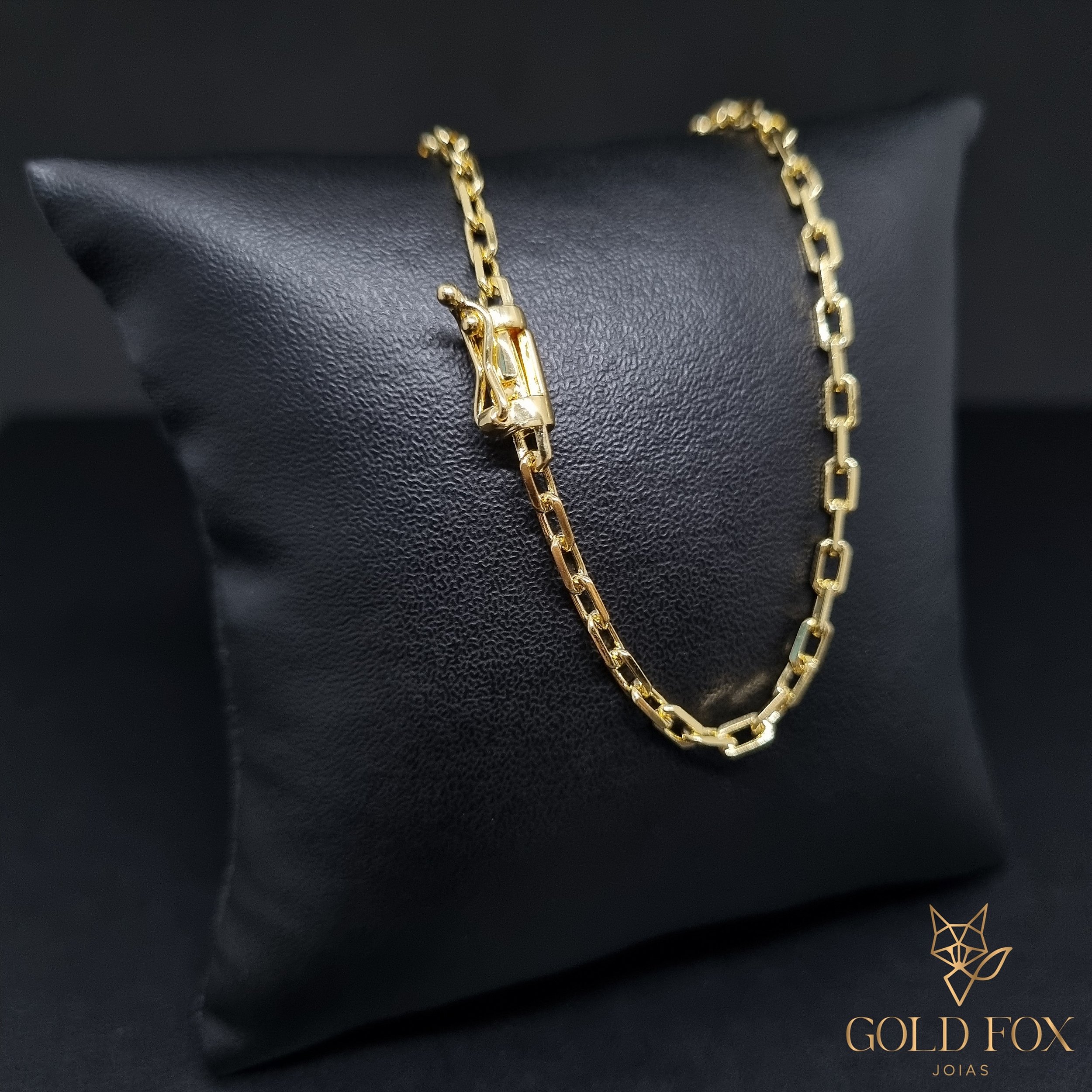 CORRENTE CADEADO 3 MM COM FECHO CANHÃO (60 CM) - BANHADO A OURO 18K