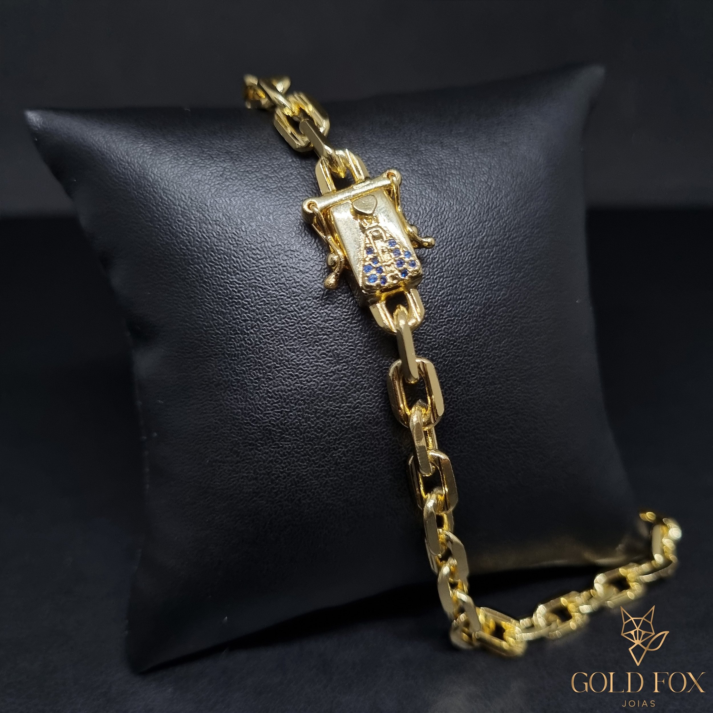 CORRENTE CADEADO 6 MM COM FECHO GAVETA NOSSA SENHORA (60 CM) - BANHADO A OURO 18K