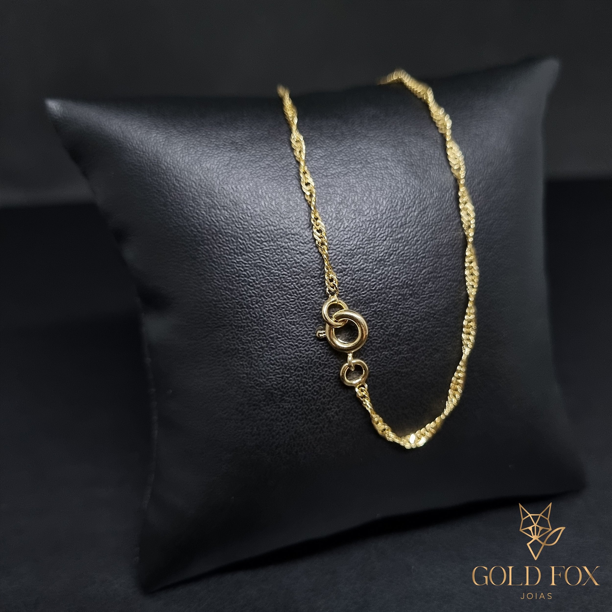 CORRENTE SINGAPURA 1,5 MM COM FECHO ARGOLINHA (45 CM) - BANHADO A OURO 18K