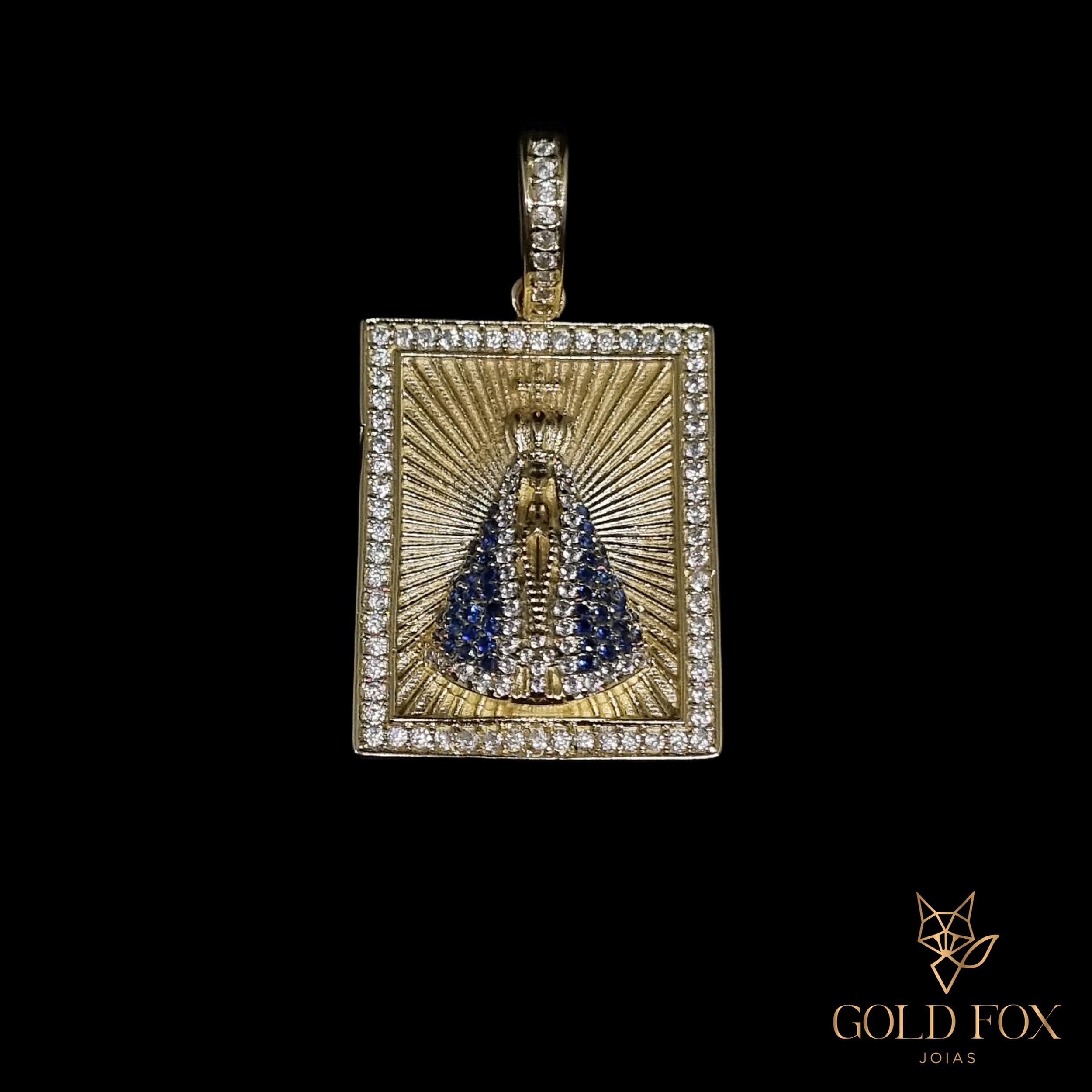 PINGENTE NOSSA SENHORA APARECIDA CRAVEJADO 3,5 CM - BANHADO A OURO 18K