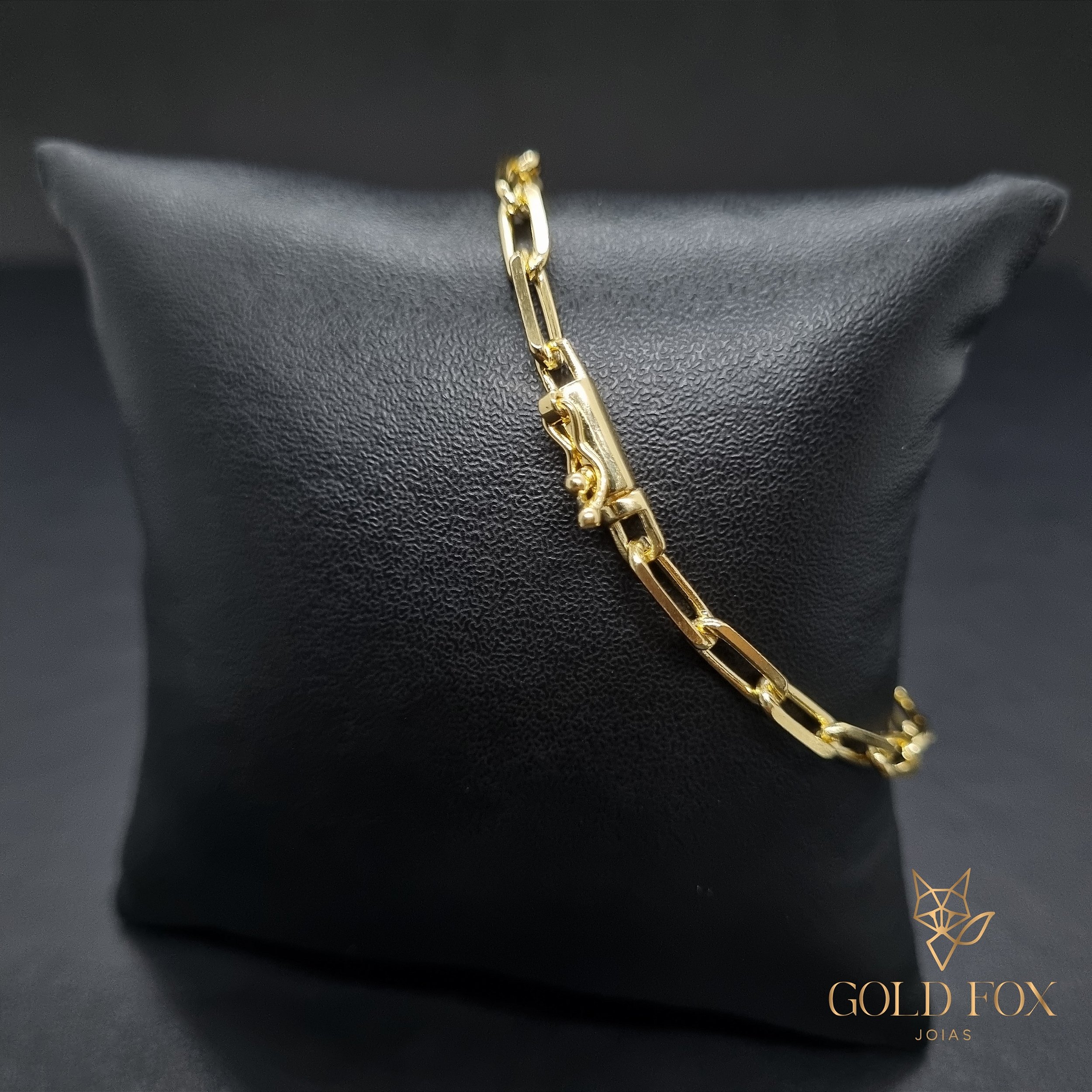 PULSEIRA ELO ALONGADO DE 4 MM COM FECHO CANHÃO (19 CM) - BANHADO A OURO 18K